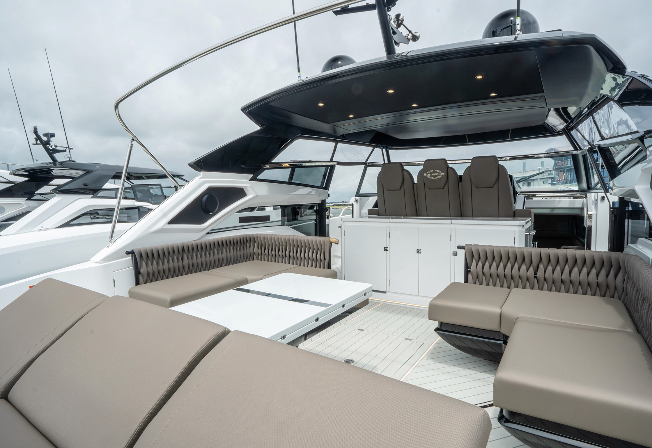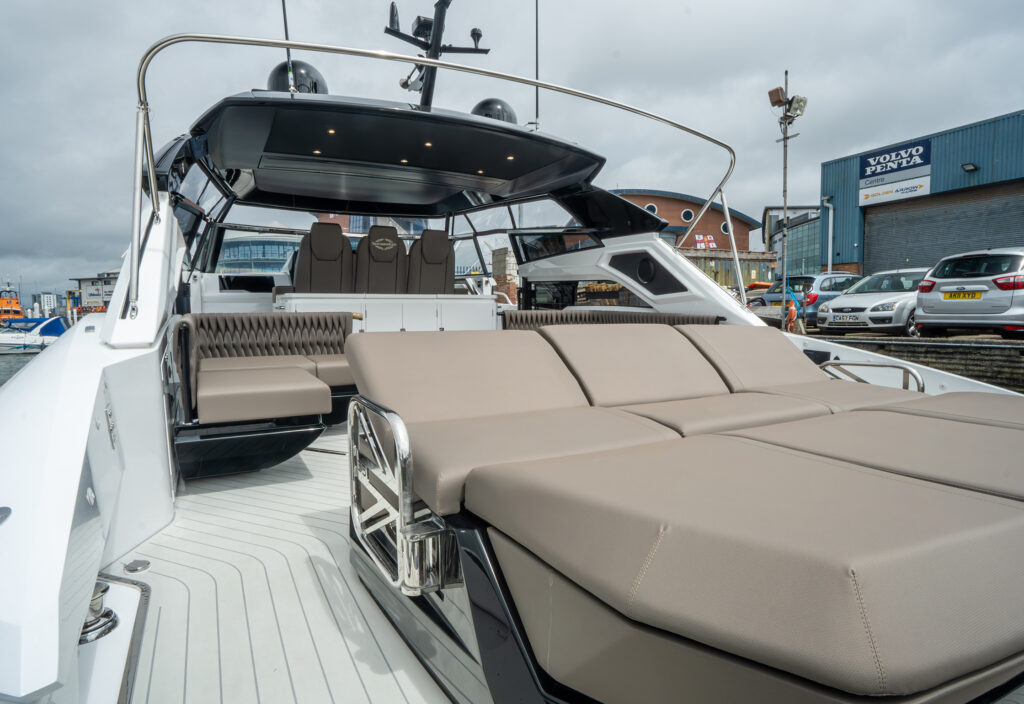 Reaching a top speed of up to 38 knots, courtesy of twin Volvo Penta IPS 950 engines, the Superhawk 55 reinvents an iconic Sunseeker sports cruiser.